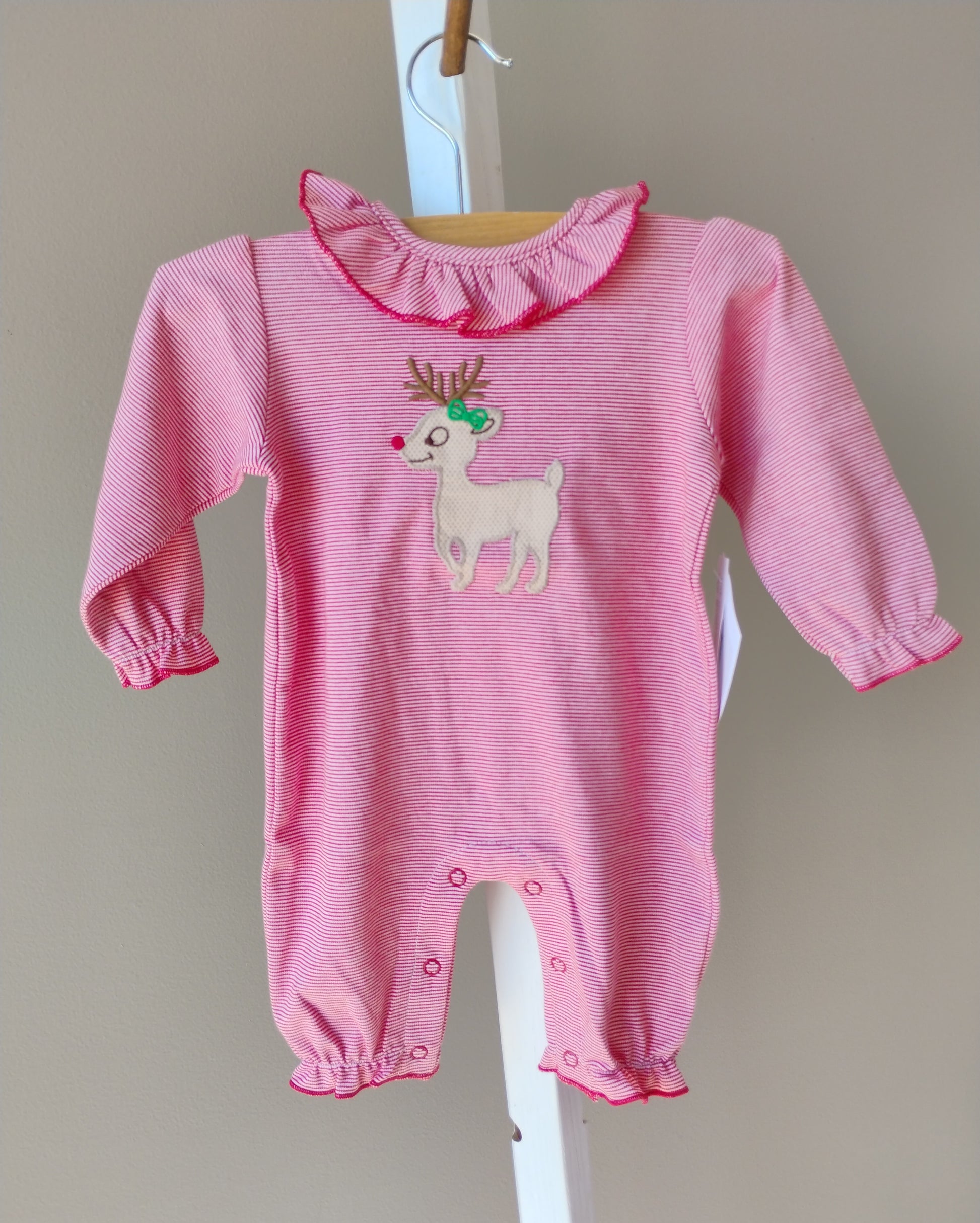 Meet the Christmas Reindeer Games Kendall—a festive essential crafted from 100% cotton for ultimate softness and comfort. This adorable design features Rudolph in playful reindeer games, bringing holiday magic to your little girl's wardrobe. The sweet, cheerful aesthetic makes it perfect for Christmas celebrations, family photos, and seasonal gatherings. Machine washable for easy care, this piece combines quality construction with charming details that capture the spirit of the season. A delightful choice from Flower Child Boutique that your daughter will love wearing throughout the holidays.