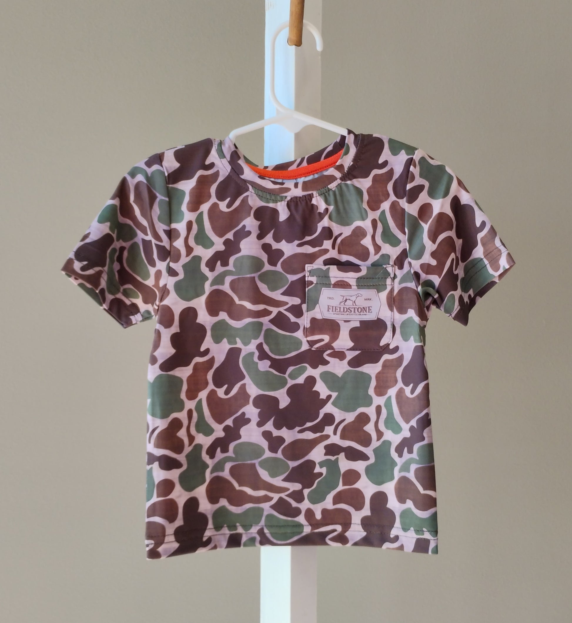 Experience the perfect blend of comfort and style with this Fieldstone dry-fit short sleeve tee. Engineered with moisture-wicking fabric, it keeps you cool and dry all day long. The practical pocket detail adds functionality without sacrificing that effortless southern charm. Whether you're pairing it with camo shorts for an adventurous look or khakis for a polished vibe, this fan-favorite piece delivers versatility that works as hard as you do. Lightweight, breathable, and undeniably stylish—the go-to shirt that earns its place in every wardrobe.