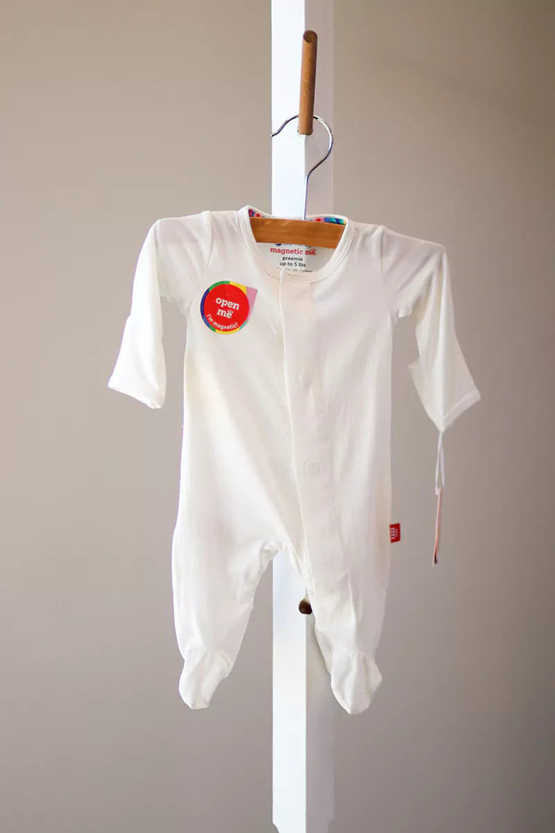 What truly sets this footie apart is the magnetic closure system. It is a quiet, effortless alternative to snaps and zippers. These hidden magnets make late-night diaper changes and delicate dressing a breeze, allowing parents to focus on cuddles instead of fumbling with tiny fasteners. Especially for preemies, the gentle design minimizes handling and keeps every moment calm and comfortable.