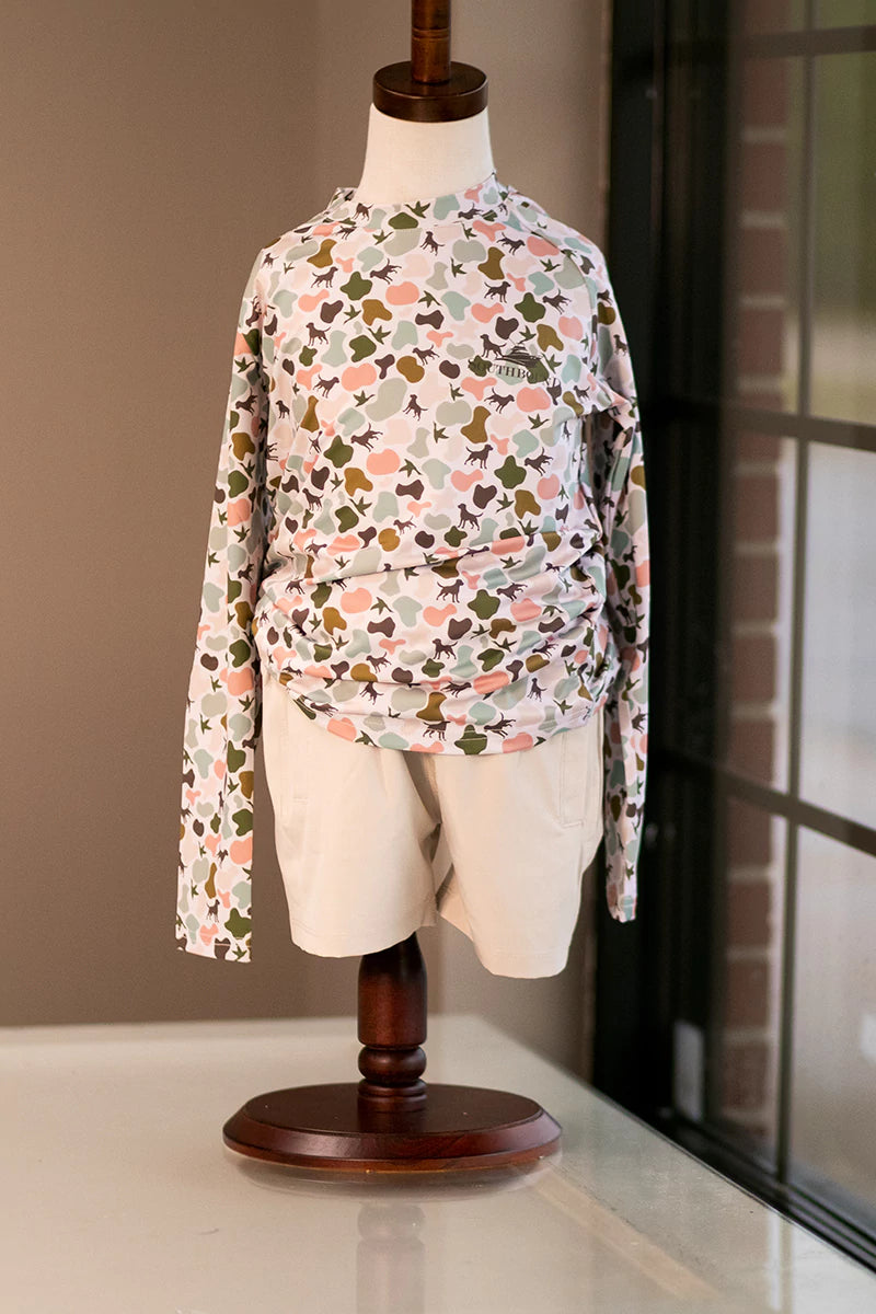 Every little explorer deserves a shirt that can keep up, and the Southbound Performance Tee Hunting Camo does just that. This long-sleeve performance tee is made for kids who love adventure, blending a playful hunting camo print with a breathable, moisture-wicking design that keeps up with every move.